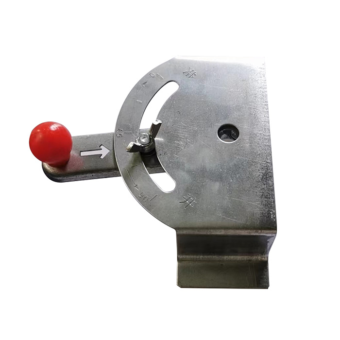 螺旋隧道周边孔外插角角度固定装置包括量角板和钻杆限位器。